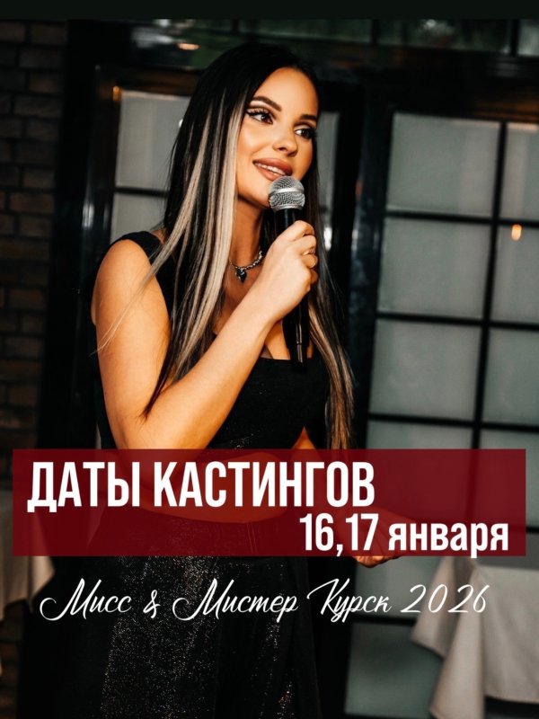 - Кастинги на конкурс красоты «Мисс и Мистер Курск 2026» пройдут 16 и 17 января в арт-пространстве «Луна» на третьем этаже ТЦ «Манеж», - рассказала организатор конкурсов Надежда Зайцева. - Отбор начнется с 19:00.