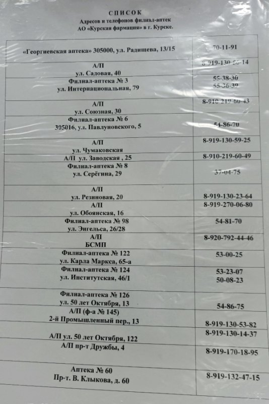 Жители Курской области, имеющие право на льготное получение медикаментов, активно жалуются в соцсетях в связи с отсутствием необходимых лекарств в аптеках. Так, бывший председатель курского Союза журналистов Константин Строев опубликовал на своей странице в социальной сети список телефонов аптек "Курскфармации", сопроводив его советом для льготников и их семей.
