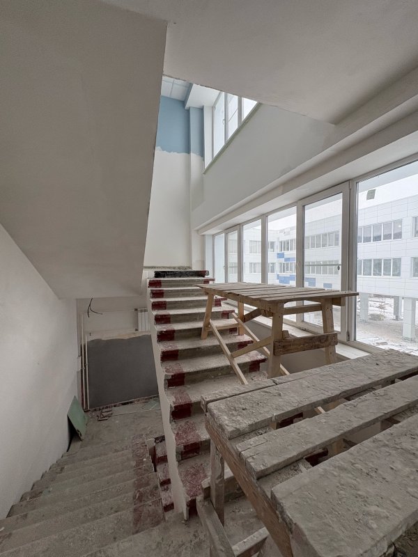 Под стать организации графика работ и отмеченные Дворцовой недостатки: отсутствуют перила на лестничных пролетах, Асами лестничные проёмы забиты строительными лесами и мусором; не везде установлены двери и нигде на дверях нет наличников; на двух этажах в кабинетах не уложен линолеум, который по графику уже давно должен был быть постелен. И прочее, прочее, прочее....