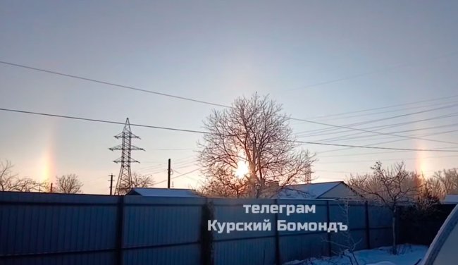 Куряне запечатлели солнечное гало под Курском - в Черницыно. Кадры появились в Телеграм-канале Курский Бомондъ.