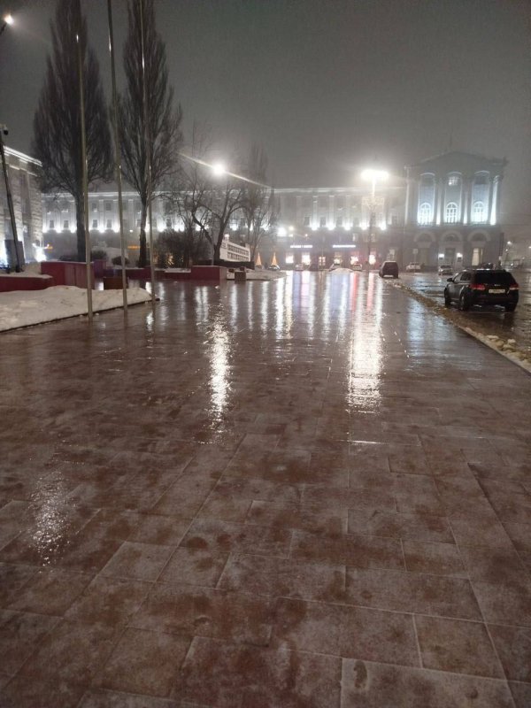 Дождь при небольшом минусе или нулевой температуре, падая на промерзшую землю моментально леденеет. И, поскольку осадки в Курске не прекращались с полудня, к вечеру все горизонтальные поверхности в городе стали сродни большим ледовым аренам.