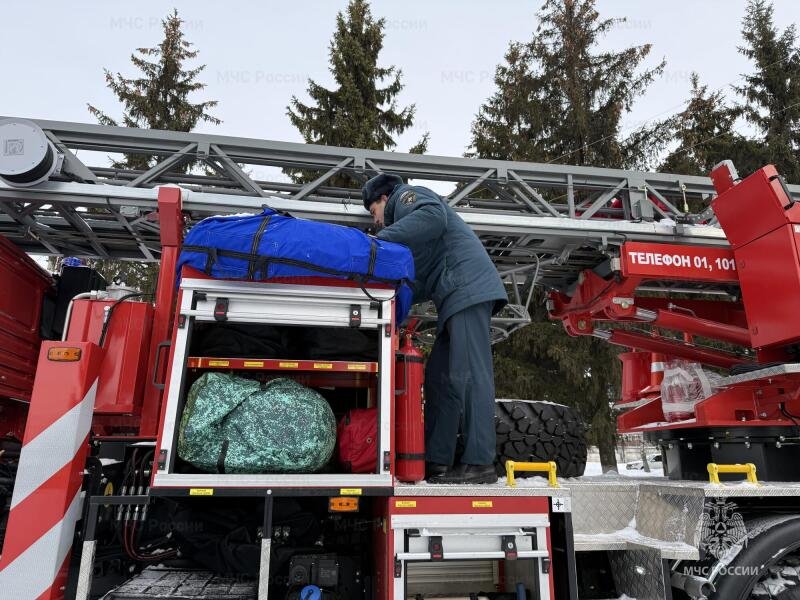 В гараже 5-й пожарно-спасательной части Курска - новая техника. Автолестница на базе автомобиля КамАЗ. Ее длина 30 метров, она поворачивается на 360°.