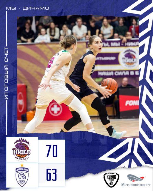 То же преимущество в 1 очко команде Сергея Вознюка удалось удержать после получаса игры. Последняя 10-минутка получались сверхнапряженной. В концовке удачливее в завершении атак была "Ника-Лузалес". 70:63 - хозяйки впервые в истории обыграли "Динамо" в рамках матчей Кубка страны и вышли в финал.