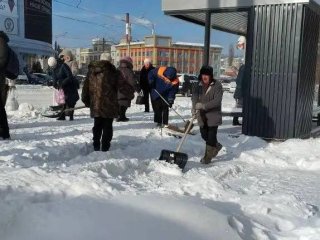 В субботний день с дорожниками снег с улиц убирают сотрудники администрации. Об этом сообщили в мэрии. Они не только расчистили территорию вокруг здания мэрии, но и переходы на Ленина и Горького.