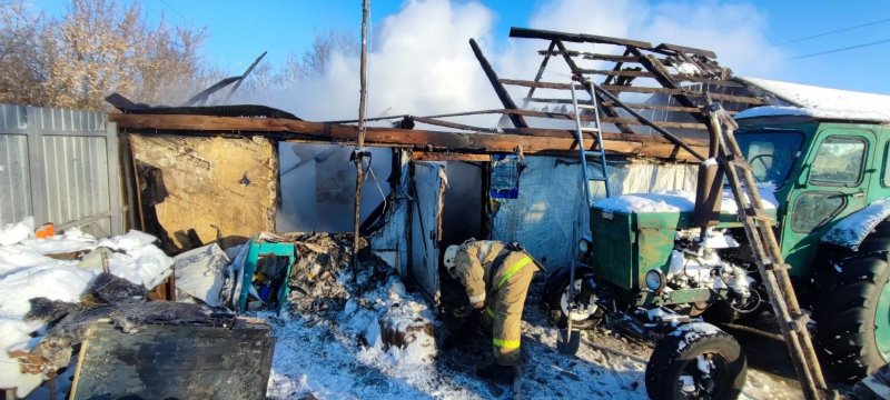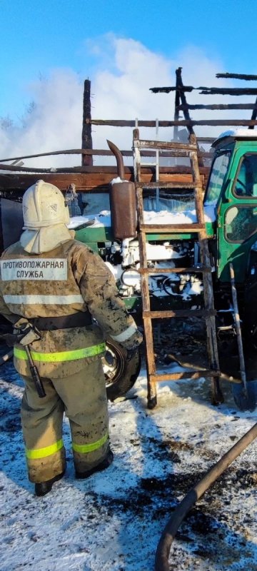 По прибытии было установлено - горит деревянная хозпостройка 9х5 метра. Пожарные начали ликвидацию огня, стараясь действовать так, чтобы пламя не перекинулось на припаркованный вплотную к постройке трактор. Задача огнеборцам оказалась под силу. Трактор остался невредим.