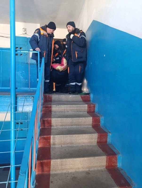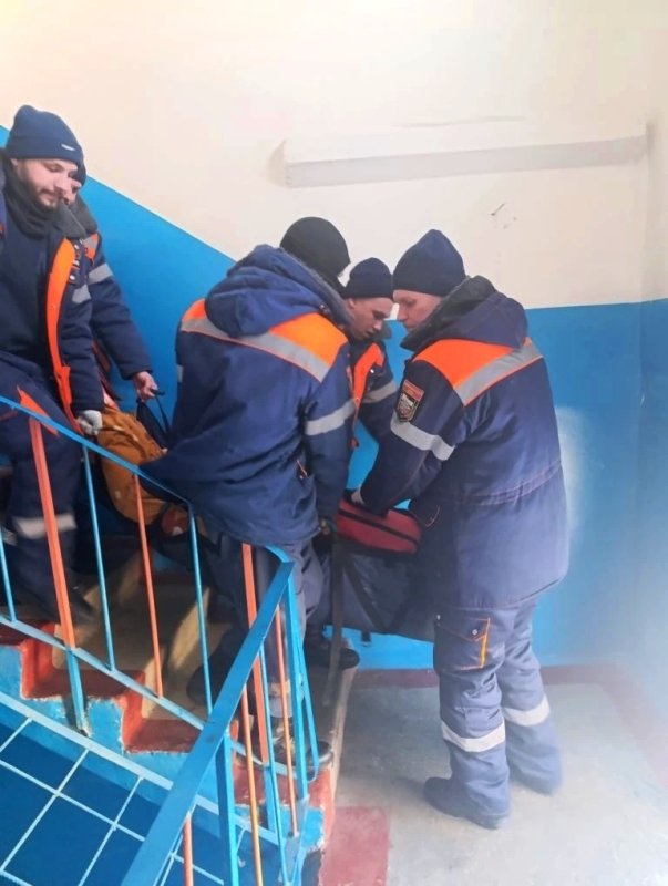 Прибывшие на место спасатели не только вскрыли дверь, но и помогли донести носилки с женщиной до автомобиля скорой помощи.