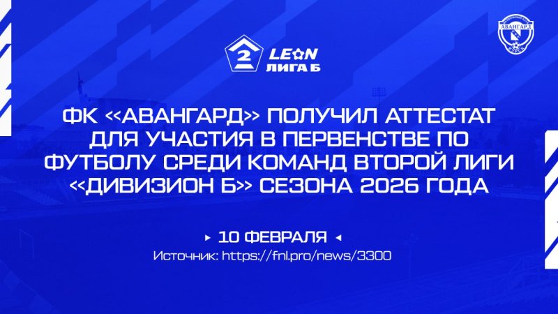 - Сегодня, 10 февраля 2026, состоялось заседание Комиссии ФНЛ по аттестации клубов Второй Лиги «Дивизион Б» для участия в Первенстве по футболу среди команд Второй Лиги «Дивизион Б» сезона 2026 года, - сообщает лига. - По итогам заседания аттестаты ФНЛ были выданы 28-и футбольным клубам.