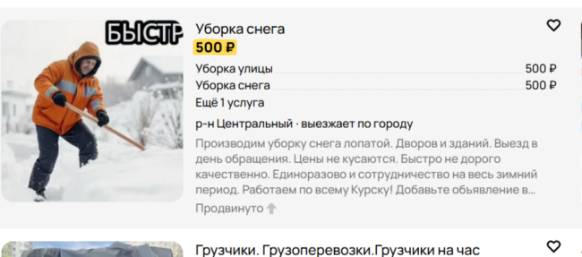 Снежная зима в Курске стала катализатором образованию новой услуги: расчистка автомобилей, дворов, дорожек. На известном сайте объявлений появились предложения о расчистке автомобилей от снега.