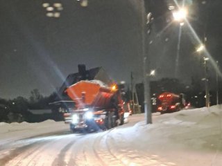 - Сначала снегоуборочная техника разбрасывает реагенты, - объяснил глава города. - Это делает снег рыхлым и предупреждает образование накатов, а значит - и гололеда. Когда вы видите, что по дорогам едет техника с поднятыми ковшами - знайте, это как раз этот процесс происходит.