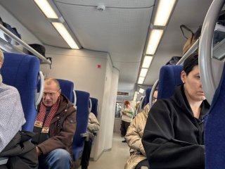 В настоящее время людей рассадили по местам. Им объявили, что пока никто не в курсе, сколько еще придется ждать отправления.