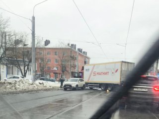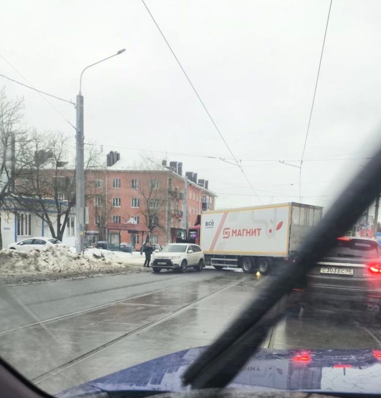 Сегодня, 24 февраля, в Курске в час пик оказалось почти полностью остановлено движение транспорта по одной из самых загруженных дорог - на улице Сумской. Причина - авария с участием большегруза.