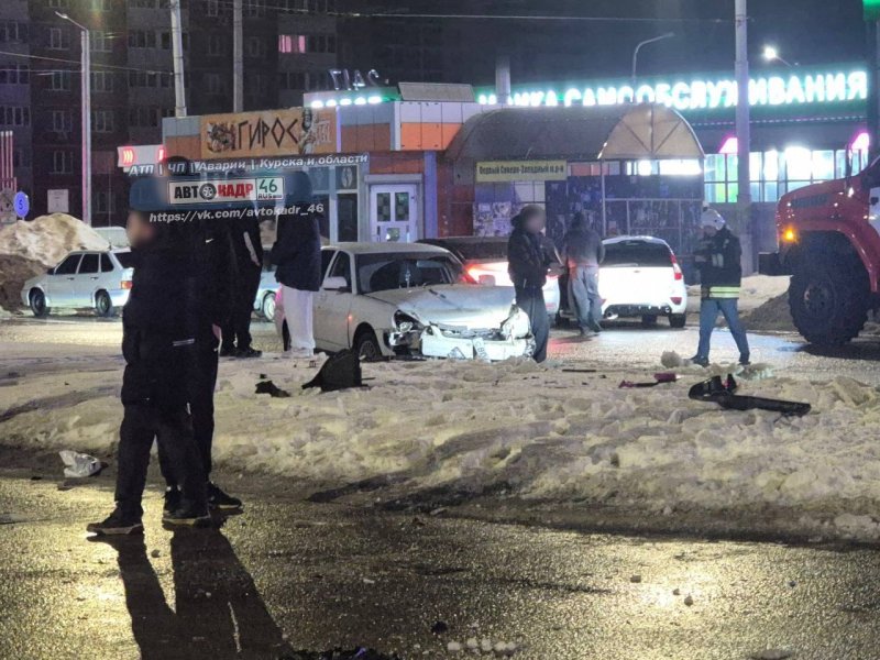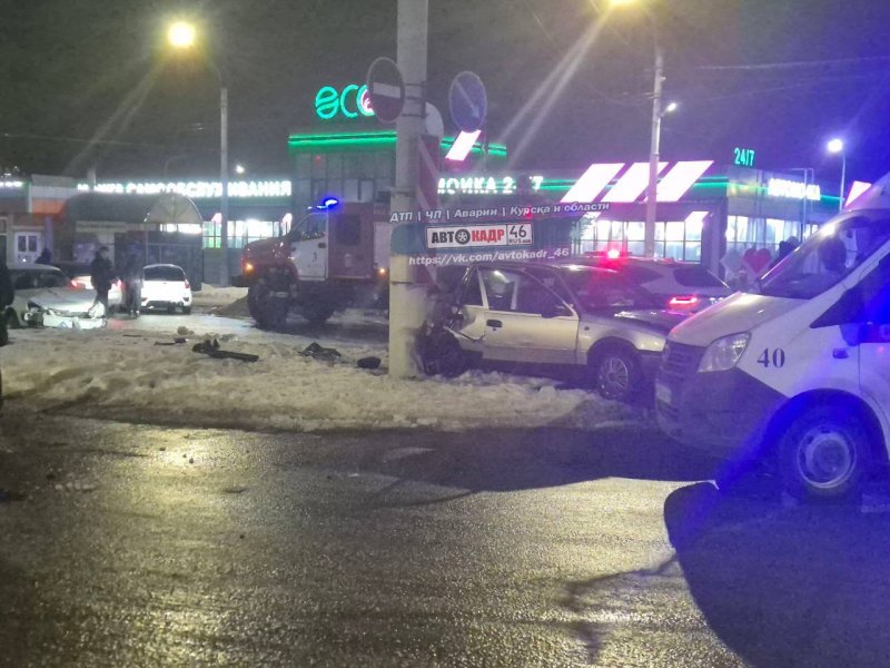 Минувшей ночью в Курске на проспекте Дружбы было зафиксировано серьезное ДТП. Там жестко столкнулись автомобили Daewoo Nexia и "Лада Приора". Одна из машин врезалась в столб.