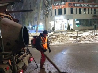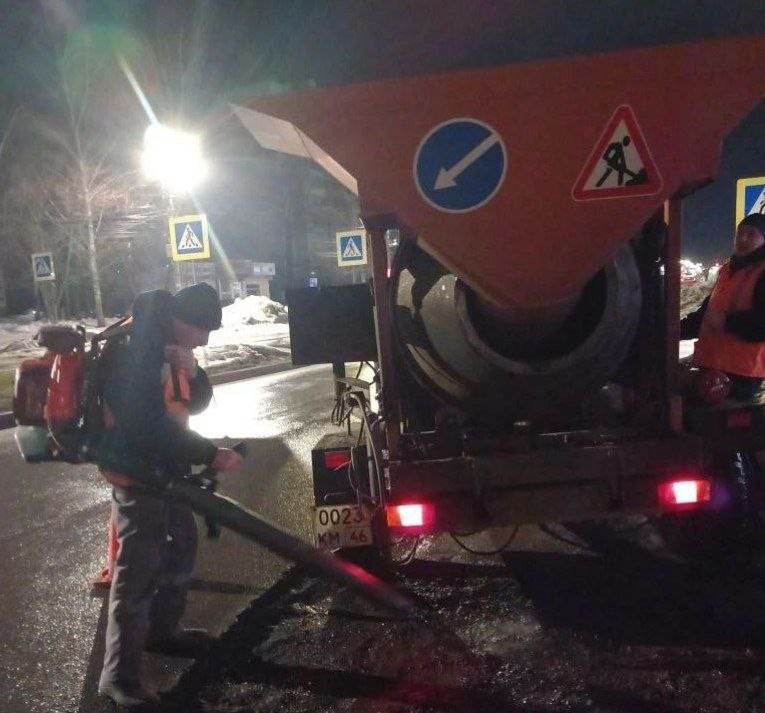 В Курске в ночь на 5 марта продолжили ямочный ремонт дорог, стартовавший несколько дней назад. В областном центре делают упор на самых разбитых участках.