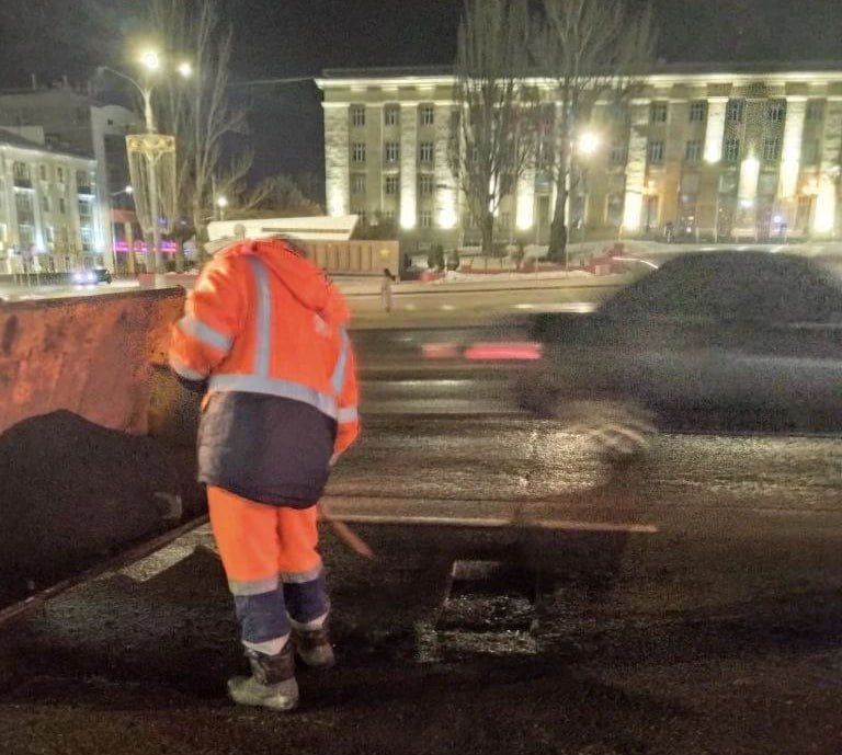 Сообщается, что ночью рабочие начали локальный ремонт на Красной площади и в районе Сумского моста.