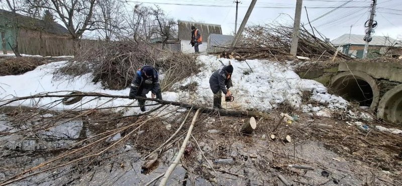 Трубы и канавы расчищают также от мусора, которые местные жители навалили на эти участки за зиму.