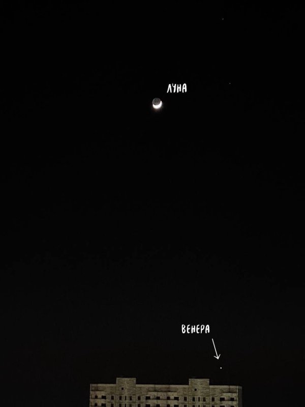 На фото подписчиков Луна и Венера, сообщают в телеграм-канале «Астрономия Курск». Сегодня, 21 марта, ясный вечер. Поэтому можно наблюдать после захода Солнца Венеру и серп растущей Луны.
