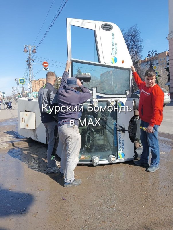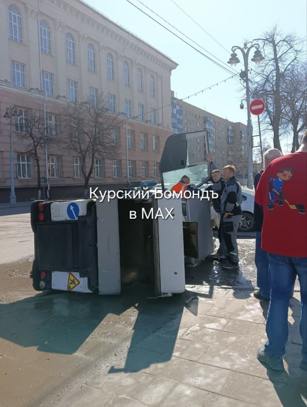 - Уборка в центре Курска сегодня пошла не по плану, - подписали пост с кадрами авторы. - Водителя достали, он жив. Скорая на месте.