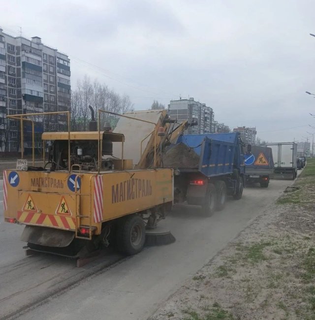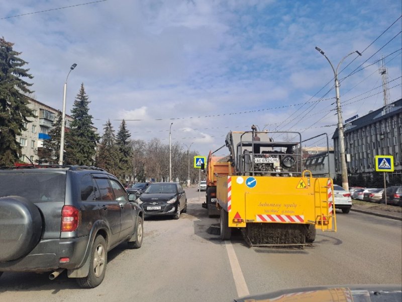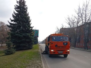 В Курске 75 работников подрядных организаций и 58 автомобилей спецтехники продолжают чистить городские дороги от песка, пыли и грязи, а также к мыть асфальт.