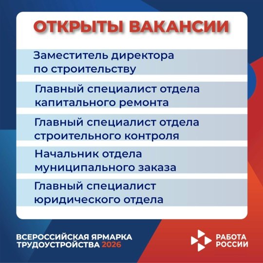 МКУ «Управление капитального строительства города Курска» набирает специалистов на вакансии руководящего состава, сообщает паблик Всероссийская ярмарка трудоустройства 2026.
