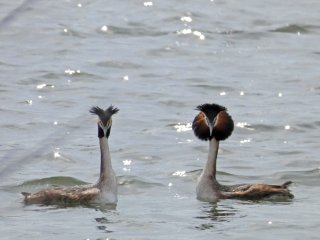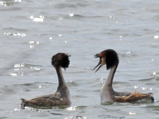 Чомги будто говорят друг с другом на только им известном языке - с помощью различных танцевальных фигур.