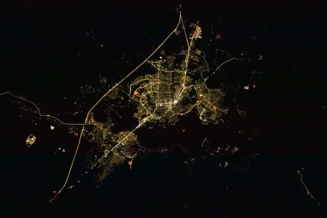 Ночной Курск с Международной космической станции выглядит впечатляюще. Весь в огоньках. Фото поделились в канале МАХ «Астрономия Курск».