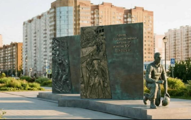 На днях рассказали о концепции мемориала, который желают установить в Курске. Сам памятник состоит из композиции, на которой русский воин с преклоненным коленом перед храмом, без оружия. Вокруг планируется шесть бронзовых барельефов, на которых изображены различные события. Среди них - эвакуация жителей по самодельным мостам, а также работа сотрудников электросетей, пожарных под обстрелами. Еще на одном - женщины тыла с коробками «Все для Победы» и дети с письмами и рисунками для бойцов.