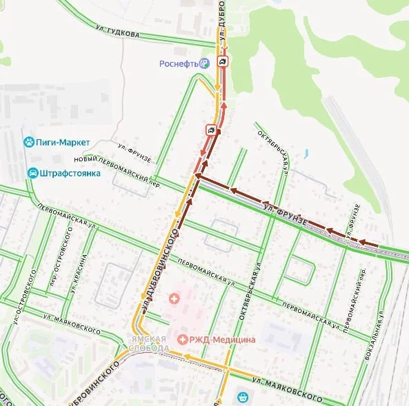 В Курске из-за дорожно‑транспортного происшествия на улице Дубровинского, в районе пересечения с улицами Гудкова и Фрунзе, возникли значительные затруднения движения личного и общественного транспорта