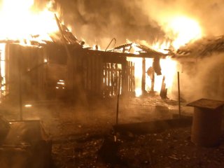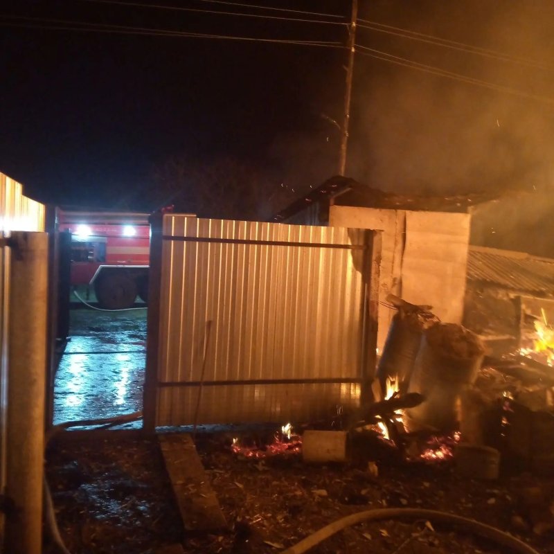 По прибытии боевого расчёта в село, было обнаружено открытое горение хозяйственной постройки на территории одного из домовладений.