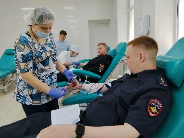 Отмечено, что многие из полицейские сдают кровь системно и имеют звание «Почетный донор России».