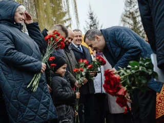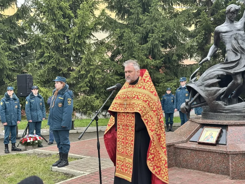 Присутствующие возложили цветы к монументу и почтили память погибших. Священнослужители провели литию.