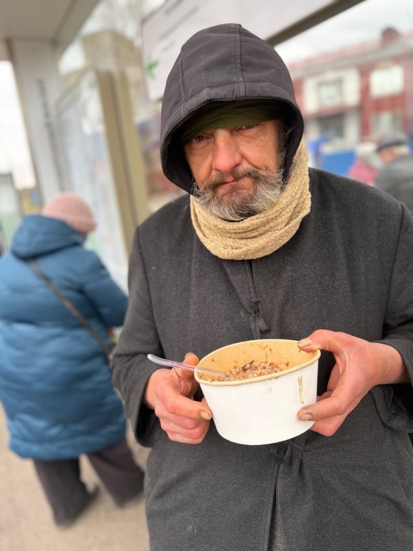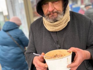 Сегодня проходят благотворительные обеды, организованные «Домиком добрых дел». Обеды провели за трамвайной остановкой ЖД Вокзал.