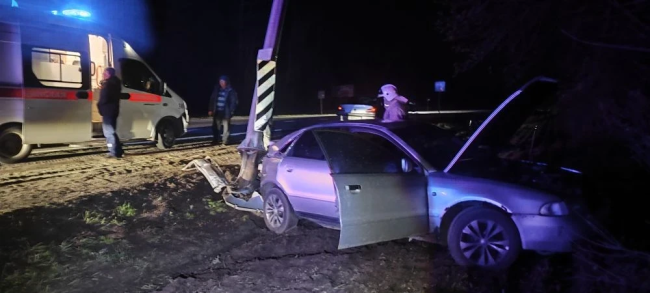 По предварительным данным водитель машины не справился с управлением и допустил съезд автомобиля в кювет. Там Audi наткнулась на опору линии электропередач.
