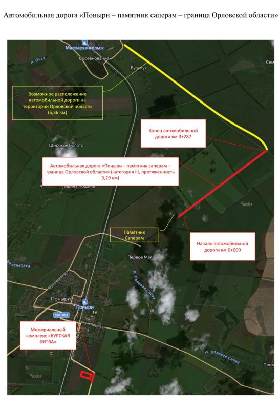 Напомним, в июне 2021 года в Санкт-Петербурге, на международном экономическом форуме, представители администраций Курской и Орловской областей подписали соглашение о совместной работе. В рамках этого документа планируется строительство дороги, которая свяжет населённые пункты Поныри в Курской области и Малоархангельск в Орловской.