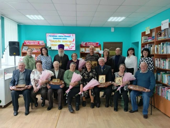 Чествование юбиляров состоялось в межпоселенческой библиотеке. На торжественное мероприятие пригласили четыре супружеских пары, отметившие 50 лет совместной жизни и пару, которая состоит в браке 60 лет.
