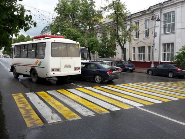 Сегодня в Курске на улице Ленина произошло ДТП с участием автобуса ПАЗ и легковой иномарки Honda.
