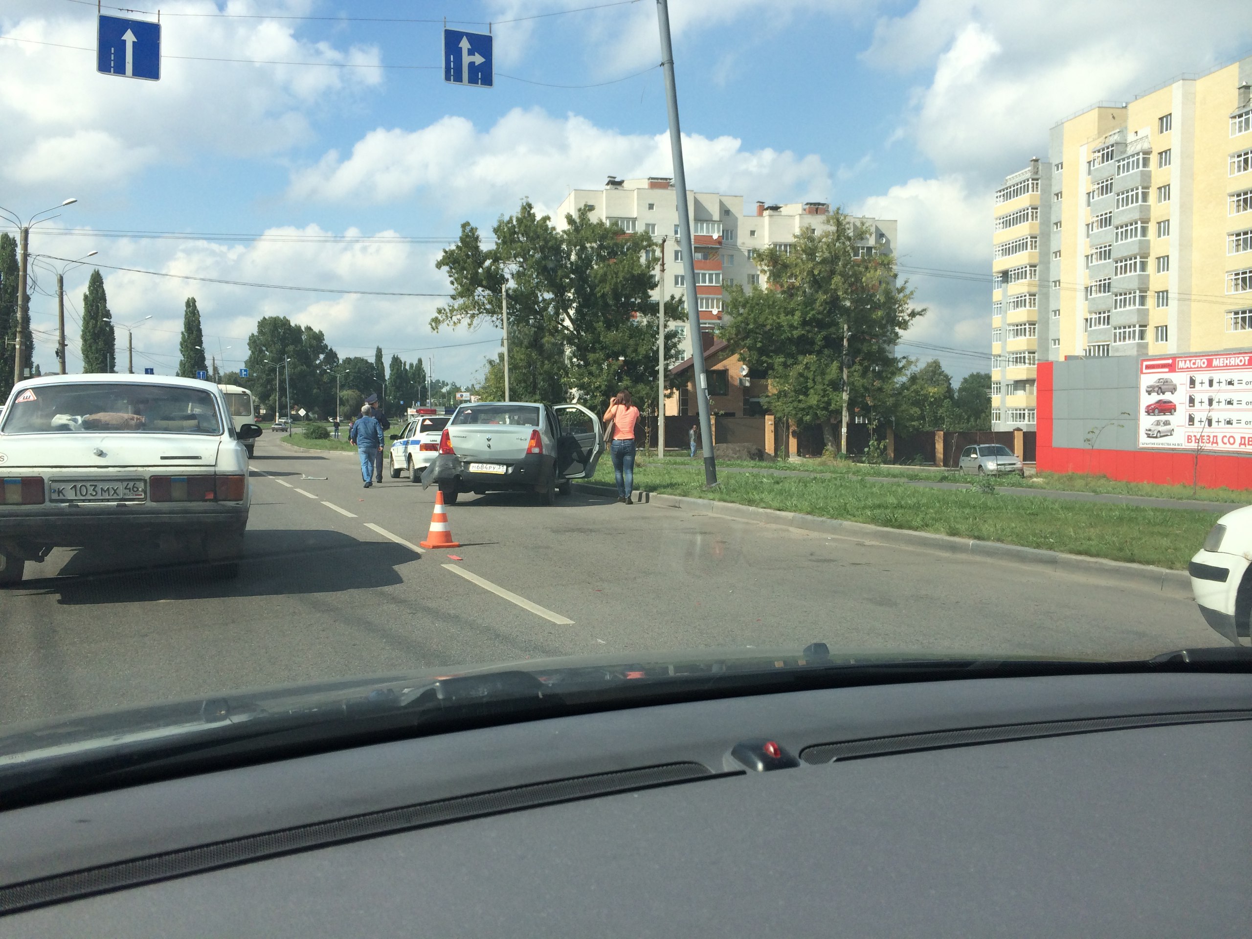 В Курске сегодня, 5 сентября 2017 года, авария на улице 50 лет Октября стала причиной автомобильной пробки. Там в районе часа дня неподалеку от пересечения с улицей Суворовская столкнулись автомобили «Рено Логан» и «Шевроле Лачетти».