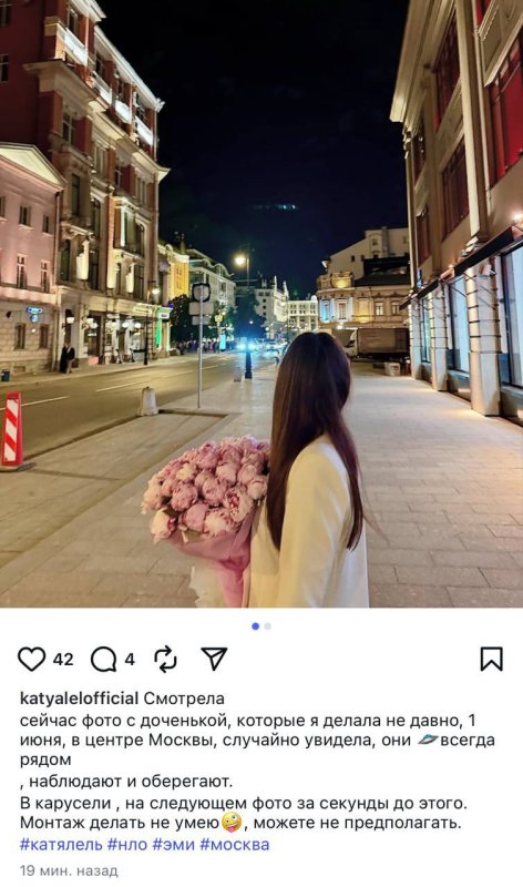 В качестве доказательства она представила снимок, на котором запечатлена ее дочь на фоне ночного столичного неба. Как следует из подписи к снимку, не все огни московских улиц земного происхождения.